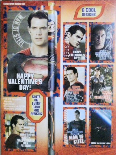 1 X Superman Man of Steel 16 Valentines Cards with 16 Pencils