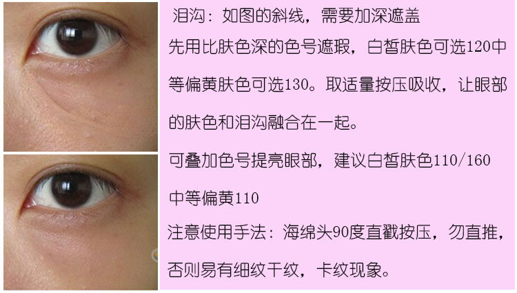 110#~140#色号是逐渐加深的,150#是中和咖啡色黑眼圈的,160#和110#是提亮的,140小麦色是修容的,选择色号的时候请根据自己的肤色。