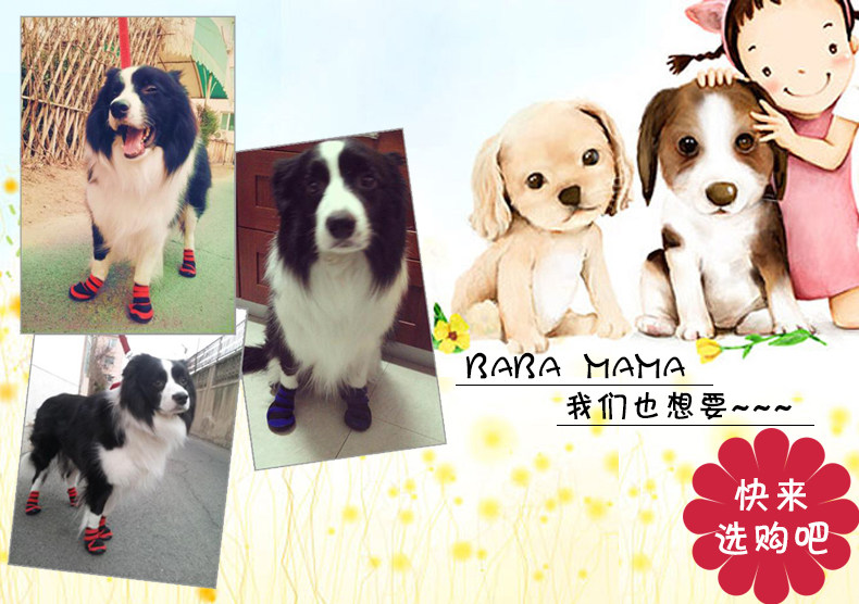 How to measure the size of the dog: let the dog's "front foot" step on the white paper, draw the outline of the foot with a pen; after the amount of your outline of the outline of the long X wide, zoom 1cm (because the dog's feet hair. Feet and more dogs to enlarge a little more, adult large dogs are more than a little more.), And then control the size of the above table than after the purchase
