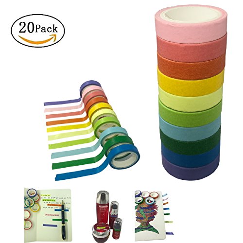 Sanmy Washi Tape Rainbow Color Scrapbook Masking Paper DIY Decoration Tape Pack of 20 (20 Rolls Washi Tape)