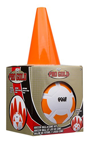 -. Binding : Toy -. Brand : POOF -. Department : unisex-child -. EAN : 0787799708170 -. Feature : Soccer practice anywhere / From strikers to centers, train like a pro / Great for beginners and younger athletes learning the game / Includes 1 foam soccer ball (7.5in) and 4 orange cones (9in) / Recommended for children 5 years of age and older -. IsAdultProduct : 0 -. Label : Poof -. Manufacturer : Poof -. Model : 486TL -. MPN : 486TL -. PackageQuantity : 1 -. PartNumber : 486TL -. ProductGroup : Toy -. ProductTypeName : TOYS_AND_GAMES -. Publisher : Poof -. Studio : Poof -. Title : POOF Pro Gold Soccer Ball and Cone Set -. UPC : 083568004864 -. Warranty : No Warranty