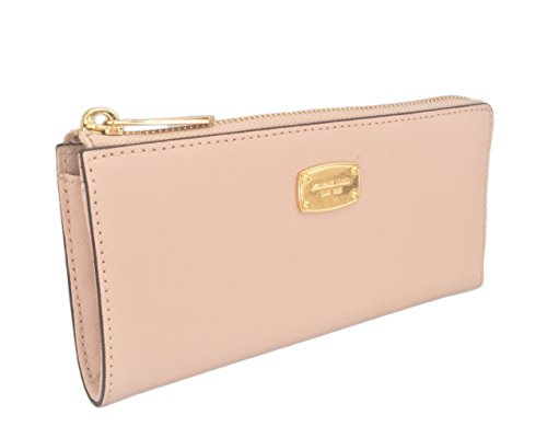 -. Binding : Apparel -. Brand : MICHAEL Michael Kors -. Color : Blossom Pink -. Department : womens -. EAN : 0190049409855 -. Feature : 100% Leather with gold tone hardware / zip closure / 8 card slips and 4 bill compartments / Leather and custom logo fabric lined interior with center zippered coin compartment / Measures approximately 7.75" (L) x 3.75" (H) x 1" (W) -. ProductGroup : Apparel -. ProductTypeName : ACCESSORY -. Size : Large -. Title : Michael Kors Jet Set Travel Large Three Quarter Zip Around Leather Wallet (Blossom Pink) -. UPC : 190049409855