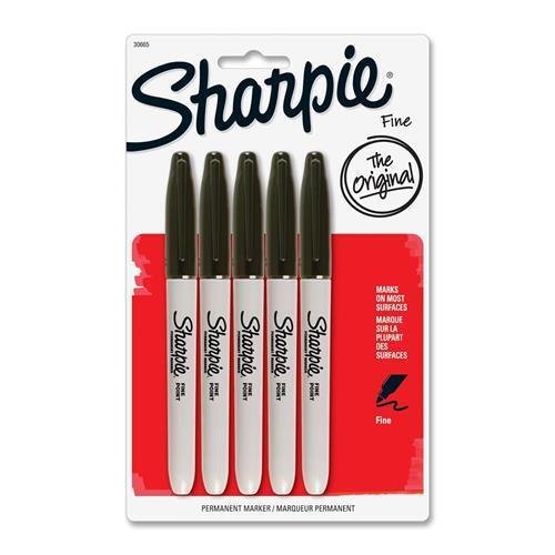 -. Feature : Sharpie Permanent Maker - Fine Marker Point Type - Black Ink - 5 / Pack / Sharpie 30665PP