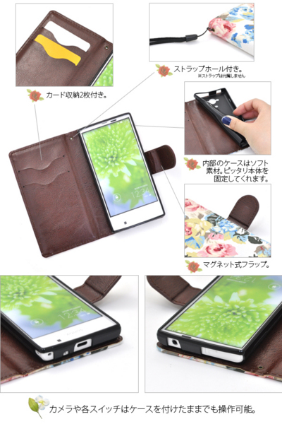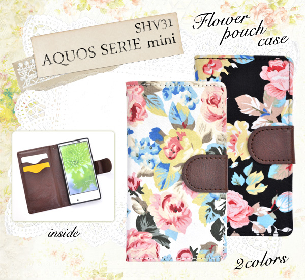 AQUOS SERIE mini SHV31用のエレガントなフラワーポーチケース。