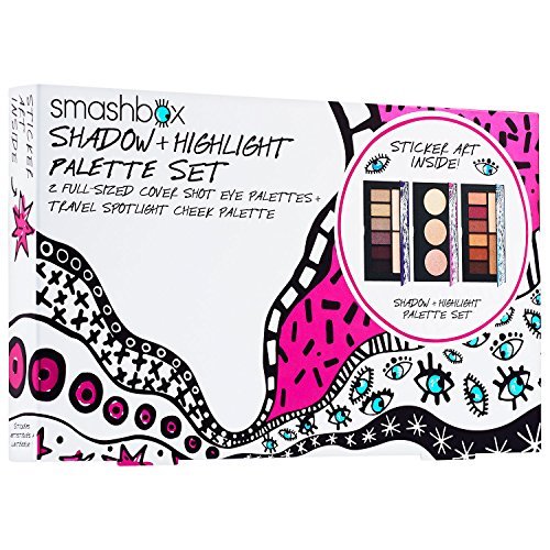 Studio : Smashbox Publisher : Smashbox Binding : Misc. Product Description This set of palettes brings you three highlight shades and sixteen on-trend eye shadow shades. It's everything you need to create makeup looks that range from holiday parties to everyday chic. This set includes: Travel Size Spotlight Palette - Pearl, 0.17-oz. Full Size Cover Shot Eye Shadow Palette - Ablaze, 0.21-oz. Full Size Cover Shot Eye Shadow Palette - Sultry, 0.21-oz. Spotlight Palette has three complementary highlighting shades, two shimmer-finish shades and one mega-sparkle that dials light way up Wear alone or layer over blush/contour to amp up spotlight Great on the go Cover Shot palettes have intense pigment payoff, superior blendability and bigger base shades Ablaze is a range of hot desert-inspired shades Sultry is an exclusive range of wearable, universally flattering shades Both Cover Shot palettes are slimline and purse size Cruelty free The Drawn In Decked Out collection of animated gifts is designed to inspire creativity and fun with makeup; Smashbox collaborated with Ana Strumpf, an editorial illustrator who turns photos into new works of art with her playful sketches Sticker sheet designed by Ana Strumpf allows you to personalize your presents NOTE: Natural beauty products are made up of both natural and synthetic ingredients and are paraben, phthalate and sulfate-free. 0