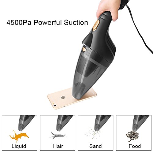 -. Feature : POWERFUL SUCTION WITH LED LIGHT: ZOTO 2017 updated Car Hoover comes with 4500Pa Suction,can pick up dust easily.A LED Light helps you to clean the dark place / EASY TO WASH: You are sested to pull the filter out, discard the contents and give the filter a wash with the brush attachment included after every use to keep it new and last a longer life / MULTI-FUNCTION: Comes with 5Meter charger cable allows you to cleaning everywhere even the car boot,1 soft long hose/1 Brush/1 crevice tube helps you to for differnt situation cleaning / CONVENIENT STORAGE & CARRY: Comes with a zippered carrying case that houses the vacuum and all of the parts. This makes it easy to keep either in the garage or in the back of your car. / WHAT WILL YOU GET: 1 4500PA Strong Suction Car Vacuum Cleaner,1 Soft Long Tube,1Crevice Tube,1 Brush Attachment,1 storage bag,ZOTO Outstandsing Customer Service And Warranty