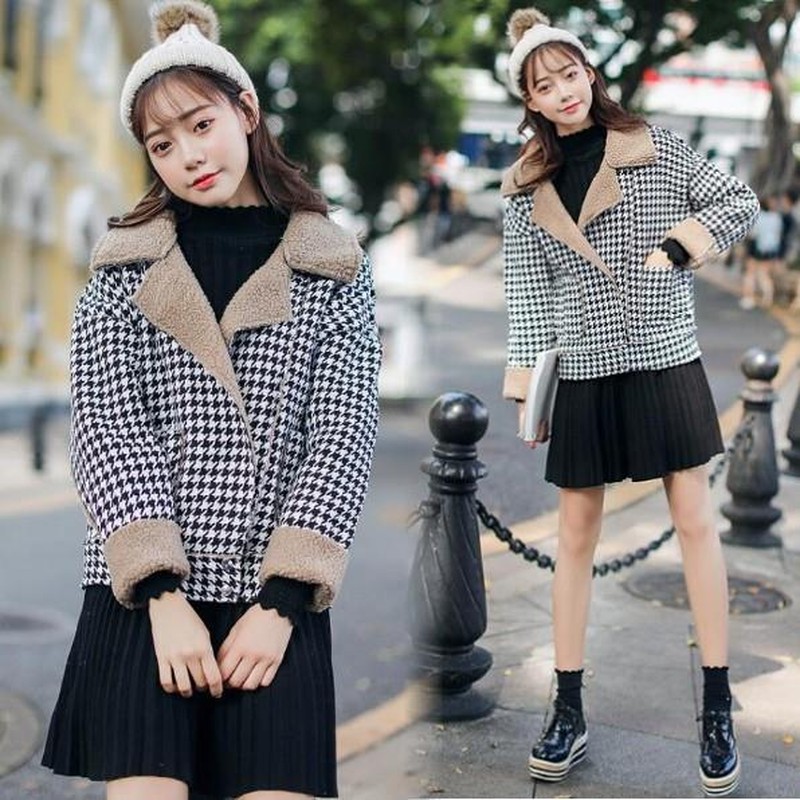 ♢ポイント♢ 格子柄が可愛いのムートン風ジャケットです。 ショート丈なのでパンツにもスカートにも合わせやすいアイテムです♪