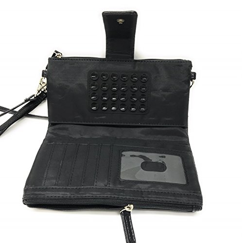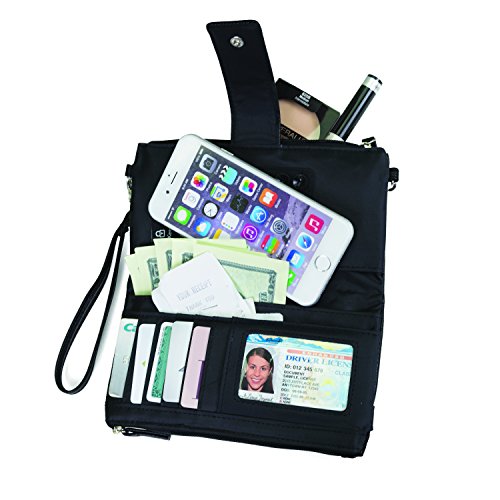 MUNDI WRISTLET CROSSBODY PURSE FOR WOMEN - Each cross body bag includes: 5 credit card slots, 2 zipper coin and change pocket, 3 large pockets, 1 outside pocket, snap closure and smart phone suction cups to hold your phone with removable wristlet strap