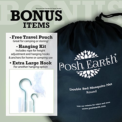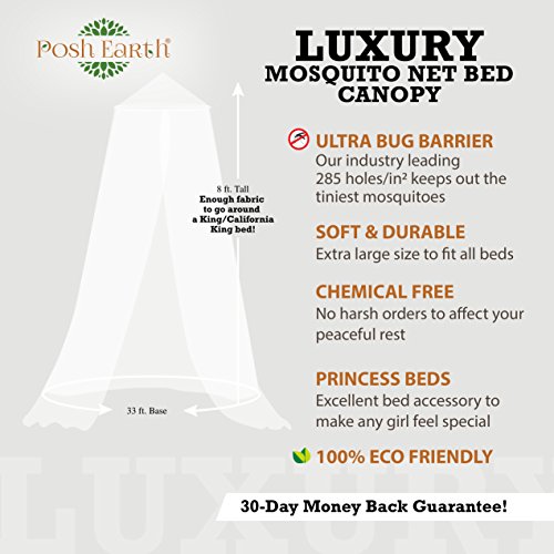 POSH EARTH Luxury Mosquito Net Bed Canopy | Round Dome Overlapping Curtain | Toddler Bed to California King | Spider and Insect Malaria Zika Repellant | Free Hanging Kit and Carry Pouch