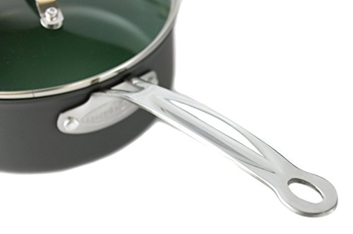 -. Feature : Set includes: 8" fry pan, 10" fry pan with lid, 1.5 qt. sauce pot with lid, 2.5 qt. sauce pot with lid, 6 qt. sauce pot with lid, aluminum steamer insert, 4 see through tempered glass lids, Instructional manual, and Recipe guide / Hard anodized aluminum non stick surface / Cook without butter, oil or grease! / Won't chip or peel / PTFE and PFOA free!