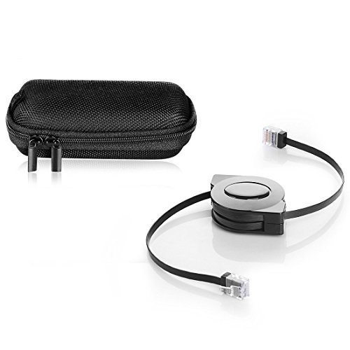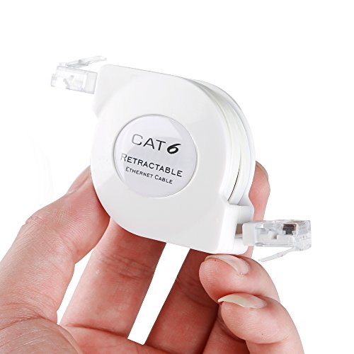 Tbmax Retractable Network Cable Cat 6 Ultra Flat, Rj45 Connectors - Ethernet Cable 5.7 Ft When Retracted/white Color