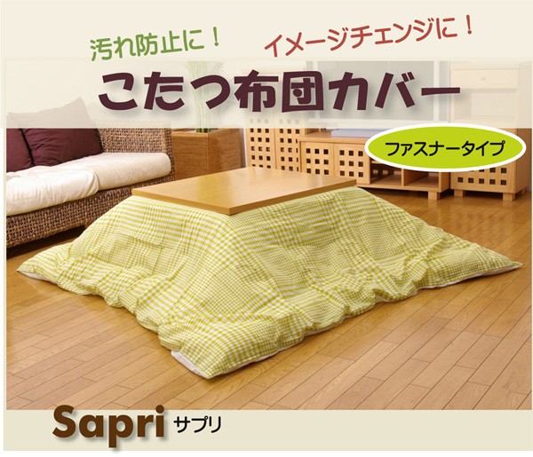 ファスナー付きコタツ掛けカバーです。洗濯機で洗えるので清潔にご使用できます。