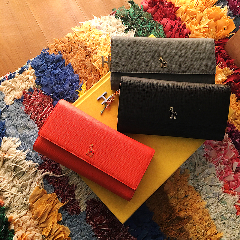 고급스러운 사피아노 가죽 바탕에 퍼피 로고 장식으로 포인트를 준 장지갑입니다.