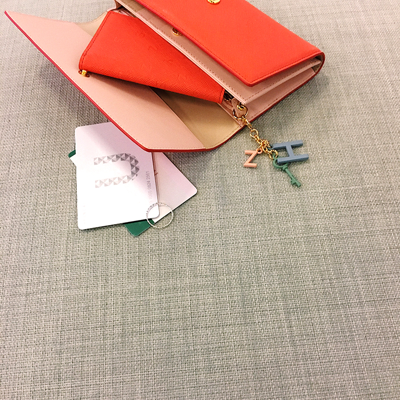 로고 참 장식으로 여성스러운 느낌을 살렸으며 탈착가능한 카드 지갑을 세트로 구성하여 실용적인 아이템입니다.