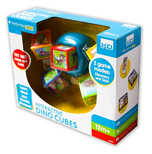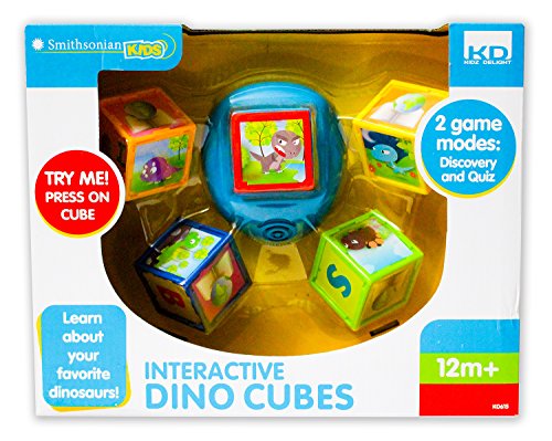 Learn all about your favorite dinosaurs: Triceratops, Tyrannosaurus, Stegosaurus, Brachiosaurus, Velociraptor. Develops fine motor skills. 2 game modes: DISCOVERY - place a cube in the platform then press and hold it down to hear fun facts about each dinosaur. QUIZ - listen to the question then place the correct dino cube into the platform and press it down to answer. Note: This toy will grown with your child: younger children will benefit from the simpler features of this toy such as coordination while older children will benefit from all the features this toy has to offer. 12m+Feature
