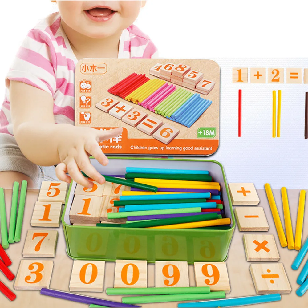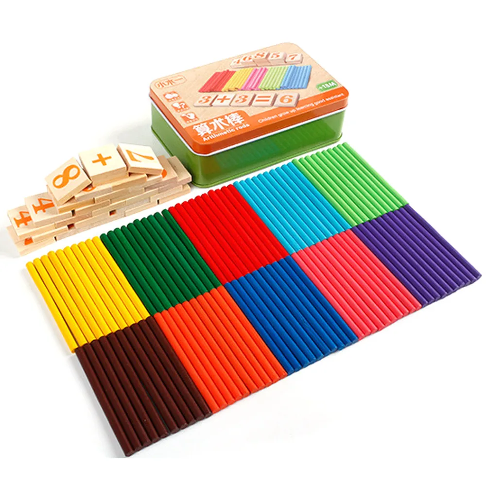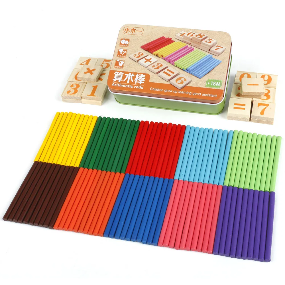 赤ちゃん学習カウントおもちゃ教育材料計数スティック早期教育モンテッソーリ木製用子数学ゲームで鉄ボックス