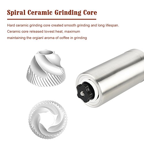 【DURABLE & PREMIUM】Manual coffee grinder consists of a brushed stainless steel body and a JAPANESE ceramic conical burr that is a more durable and not easily fragile. Without all of the heat from the electric grinder, you will taste SO much more flavor from coffee beans!