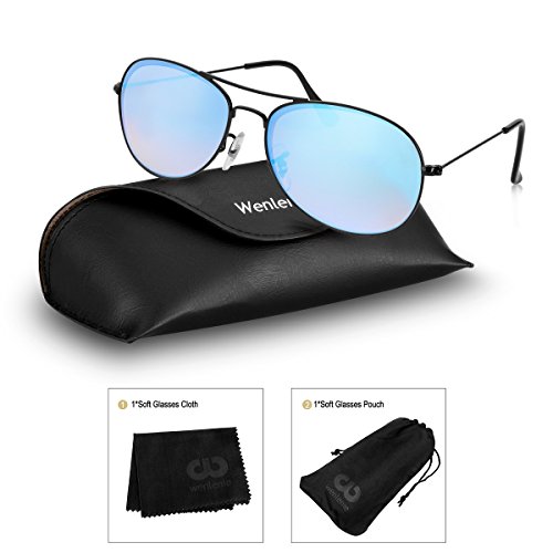 Make Sure You Get The Suitable Size -- Super Important(56mm is for SMALL face, 59mm is for LARGE face) Are you tired of sunglasses that do not look cool? Do you hate lenses that scratch easy, or are impossible to clean? These sunglasses from Wenlenie are the answer! This design has that classic cool look of a pilot ready to fly the friendly skies. The glass lenses are resistant to scratches than plastic, and they are easy to clean. Although the frame is made of gold metal, it is capable of stretching freely for a comfortable fit. Sunglasses are a cool accessory, but they also protect your eyes from the harmful rays of the sun. Maybe your reason for wearing them is more superficial: you want to hide puffy eyes or go one day without makeup. Well, these glasses will suit THOSE needs too!