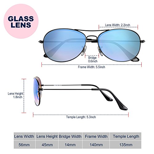 【SELECT THE SUITABLE SIZE】 56mm is for small face. The durable metal frame guarantees these aviator sunglasses were built to last