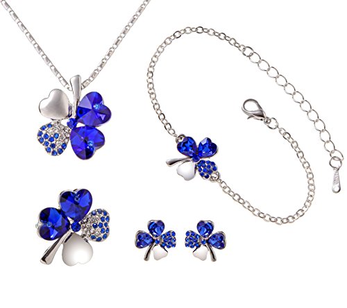 -. Title : Phoenix 幸運 四つ葉のクリスタル クローバー ネックレス & ブレスレット & ピアス & ブローチ 計 4種セット