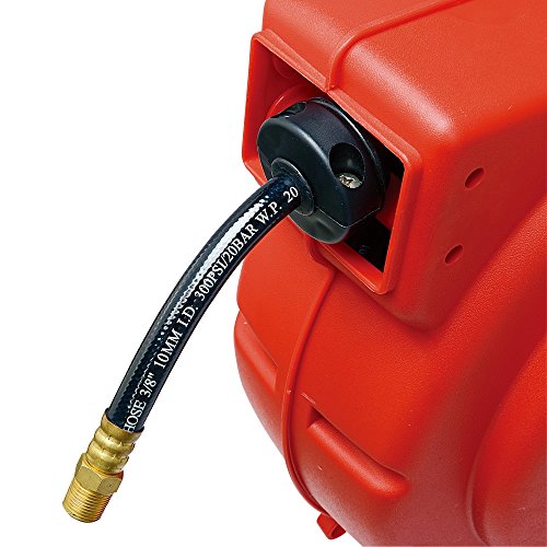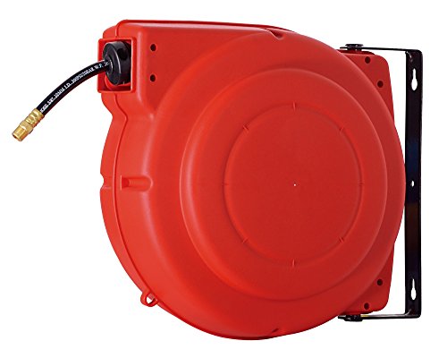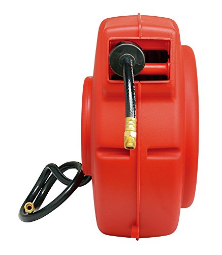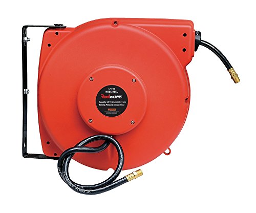 ReelWorks L715153A Plastic Retractable Air Compressor/Water Hose Reel with 3/8" x 50' Hybrid Polymer Hose, Max. 300 psi