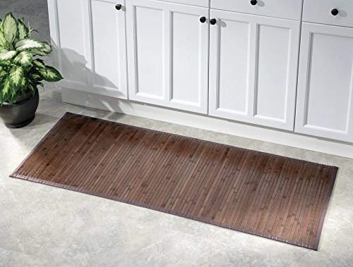 mDesign Water-Resistant Bamboo Floor Mat for Bathroom - Extra Large, Mocha Brown