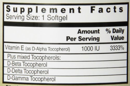 Natural vitamin E with 100% natural mixed tocopherols. A major antioxidant. Supports cardiovascular health. Supports cardiovascular health. It is important in protecting the body's cells from free radical or oxidative damage.