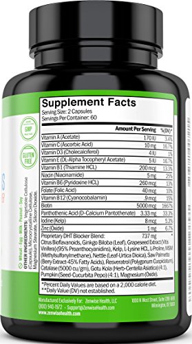 ZENWISE HEALTH HAIR GROWTH VITAMINS contain a specialized blend of 27 nourishing ingredients that encourage hair growth for men and women. Featuring 5000mcg of Biotin, the vitamins and antioxidants in this DHT-blocking formula have been shown to promote healthy looking skin and thicker, fuller hair.