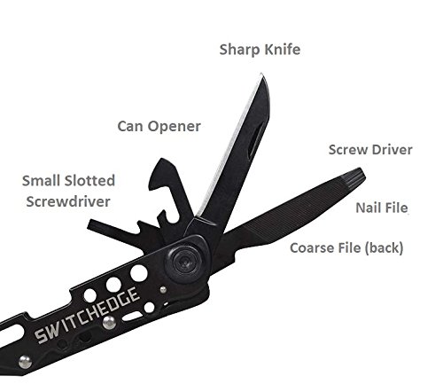 Studio : SWITCHEDGE Publisher : SWITCHEDGE Binding : Misc. Product Description No need to ever buy another multi-tool again! Tactical, sleek, and stylish, yet amazingly versatile and durable, the Shadow Multi-Tool by SWITCHEDGE is sure to impress! Heavy duty Stainless Steel construction with an assortment of knives and tools to meet any and every situation life can throw at you. Perfect for everyday home use up to the most demanding of survival and work environments. Comes fully loaded with the following essential tools: 1. Spring Loaded Flat Nose Pliers 2. Spring Loaded Regular Pliers 3. Spring Loaded Wire cutter 4. Slotted Screw Driver 5. Can Opener 6. Mini slotted screwdriver 7. Nail Tool 8. Nail File 9. File (Coarse) 10. Knife 11. Bottle Opener with 12. Slotted Screw Driver 13. Serrated Blade 14. Phillips Screw Driver (Nylon Belt Carrying Case Included) 0