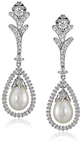 -. Feature : Cubic zirconia-encrusted earring in shared-prong sterling silver featuring drop pearl and frame at center / Post with friction back / Imported