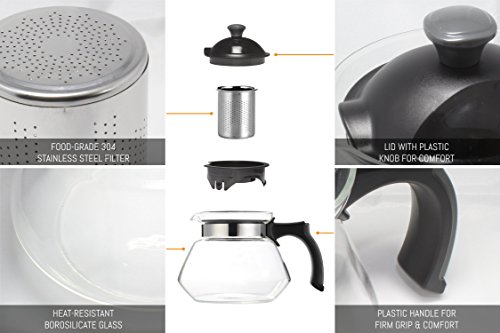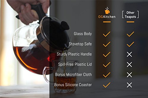 (OG Kitchen)/Kitchen Dining/Tableware/DIRECT FROM USA/OGKitchen Glass Teapot w/ Infuser ? 34oz Stovetop Safe Borosilicate Tea Pot ? Plastic Handle ...