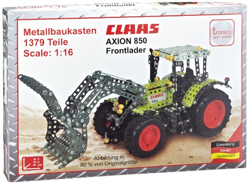 Tronico Toys GmbH Tronico 10061 - Metallbaukasten - Traktor Claas Axion 850 mit Frontlader, Massstab 1:16