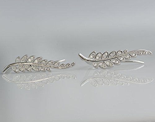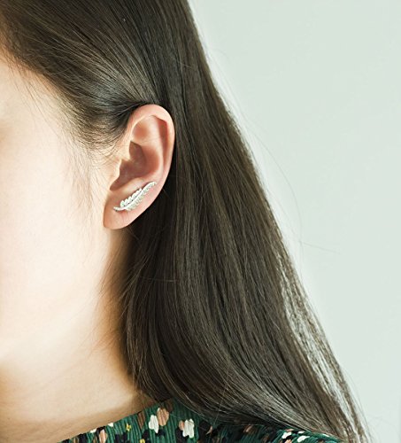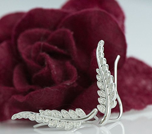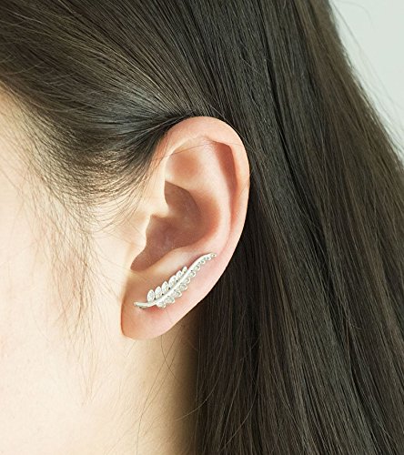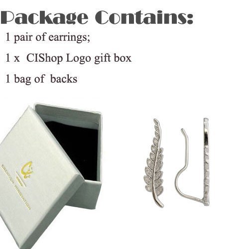 -. Title : CIShop Inlay CZ Diamond 925 Sterling Silver Leaf Ear Cuff Ear Climber Stud Earrings Hypoallergenic