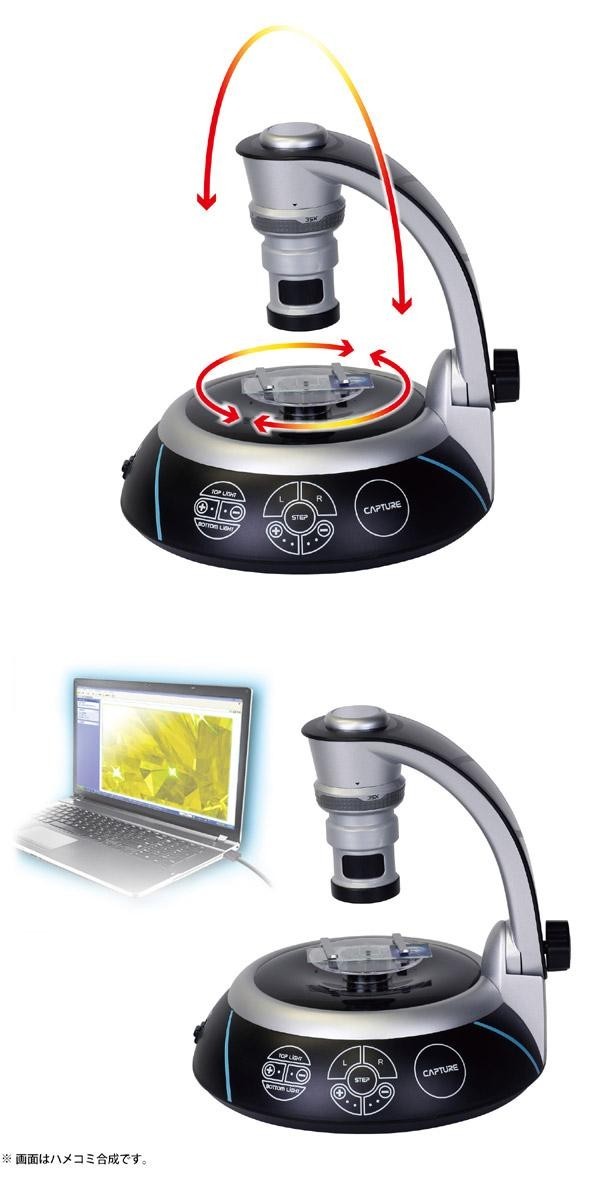 | マルチアングルアームで様々な角度から観察が可能です。ターンテーブルも付いていますので、観察しながら回転させることができます。 |