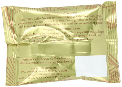 -. Binding : Grocery -. Brand : Coffee Masters -. Feature : One box of Royal House blend coffee containing 12 packets (makes 100-120 total cups of brewed coffee) / 100% Arabica ground coffee; freshly roasted and Kosher certified / Blend of the finest South and Central American beans / Pre-ground and pre-measured packets for the perfect 8-10 cup pot of coffee / South and Central American beans roasted in U.S. -. Label : Coffee Masters -. Manufacturer : Coffee Masters -. NumberOfItems : 12 -. PackageQuantity : 12 -. ProductGroup : Grocery -. ProductTypeName : GROCERY -. Publisher : Coffee Masters -. ReleaseDate : 2006-08-31 -. Studio : Coffee Masters -. Title : Coffee Masters Perfect Potful Royal House Blend Ground Coffee, 1.5-Ounce Packets (Pack of 12)