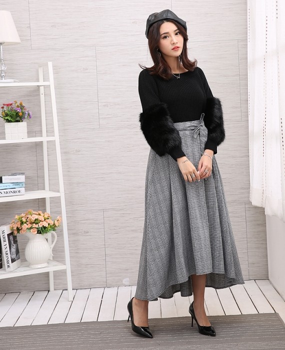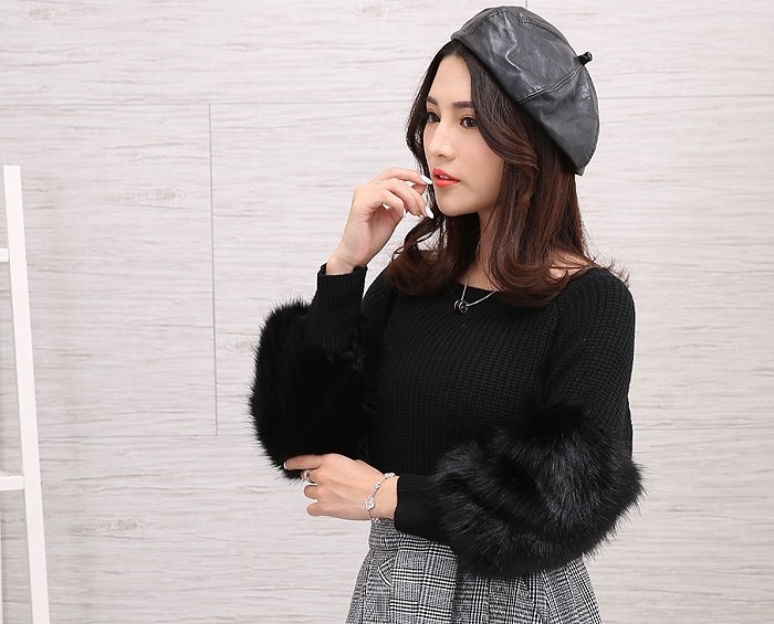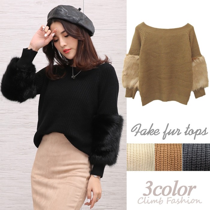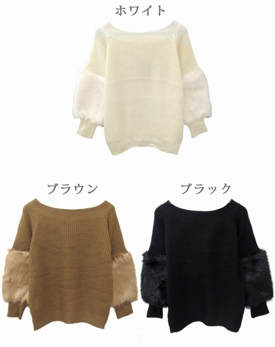 【コーディネート】ボトムスを選ばないので、カジュアルにもフェミニンスタイルにもマッチします♪【素材・着用感】柔らかなニット生地に上品な同じカラーのエコファーをあしらいました。ボディラインを拾わないフォルムで体型カバー効果も期待できます。【デザイン】袖口のエコファー使いに今年らしさを感じるニットプルオーバー。ボトルネックデザインとゆったりとした身頃が、こなれた着こなしを後押しするアイテムです。カラー:アイボリー、ブラック、ベージュモデル着用カラー:BLACKモデル身長:160cm原産国:中国製素材:サイズ:FREE(総丈:50cm/胸囲:cm/袖丈:51cm/袖口:8cm)