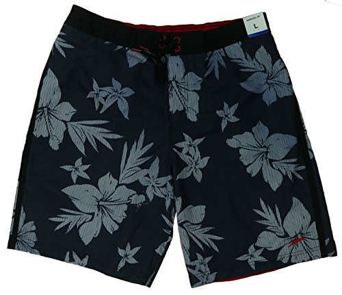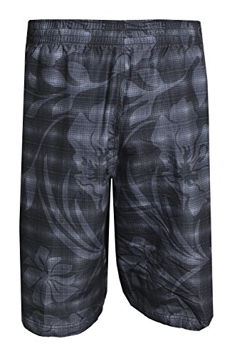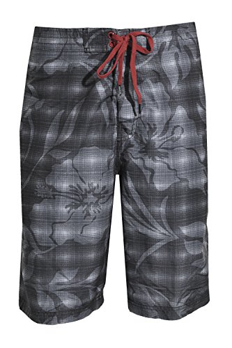 Speedo Mens Plaid Floral Boardshorts (Black Gray, X-Large)