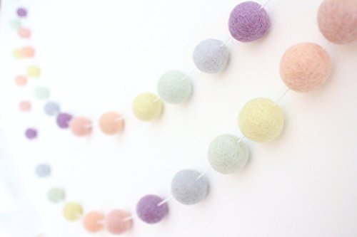 -. Title : "Pastel Rainbow" Handmade Felt Ball Garland by Sheep Farm Felt- Pastel Pom Pom Garland. 2.5 cm balls.