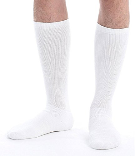 Runee Premium Compression Sock Knee High. Best For Medical Nurses, Arthritis, Diabetic Aid, Foot Pain, And Air Travel (L/XL, WHITE)