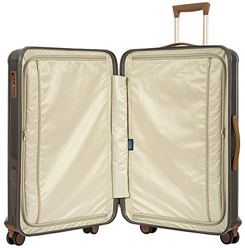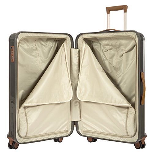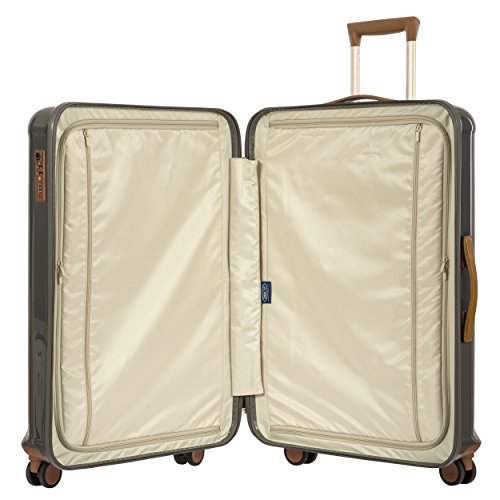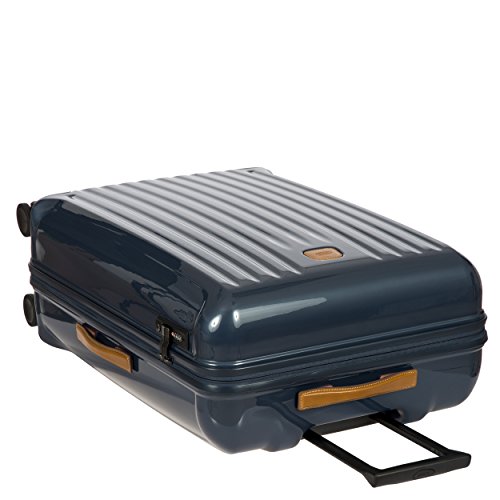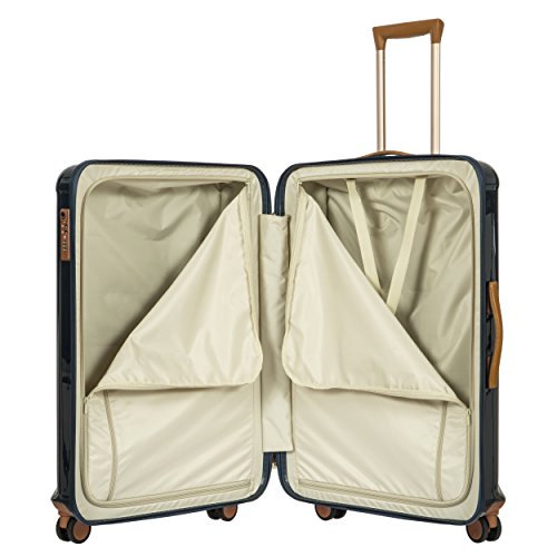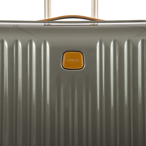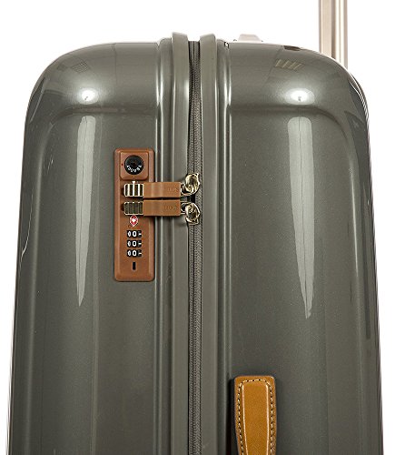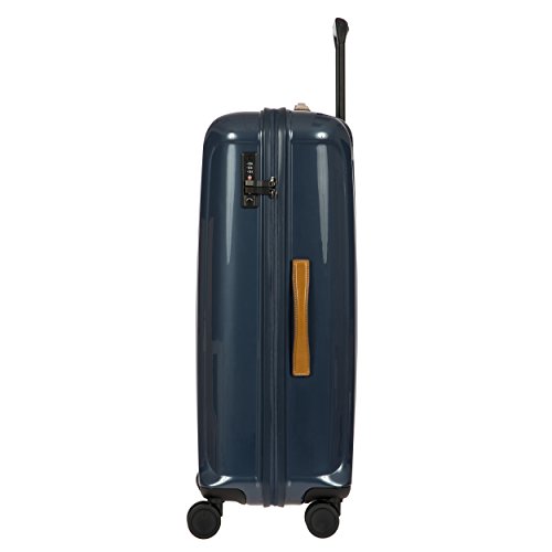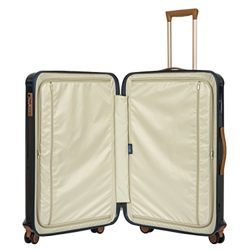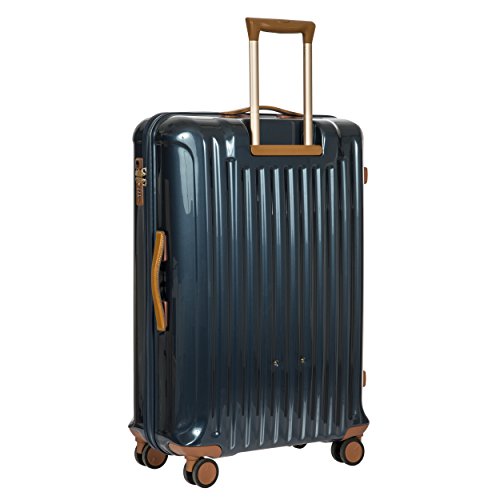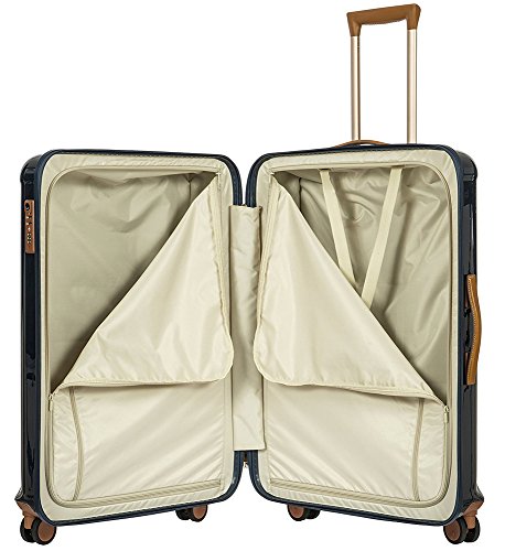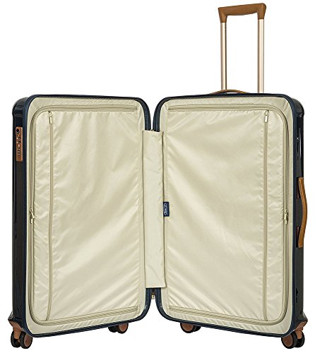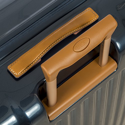 Studio : Bric's Luggage Child code Publisher : Bric's Luggage Child code Binding : Apparel Product Description A lightweight, handcrafted suitcase offering a spacious interior, four spinner wheels, and polycarbonate shell. Interior sized to hold your essentials for a lengthy trip while being spacious enough for those extra items taken home after travels. Super impact-resistant polycarbonate shell withstands rigorous baggage hanging with ease. Full-grain Tuscan leather details on handle and logo give this modern luggage a classic look. Japanese dual Hinomoto wheels glide effortlessly over hard and soft surfaces. Water-resistant sealing zipper keeps your belongings dry and protects against moisture and transfer of smell. Reinforced rib on shell bottom for increased stability. Protective luggage cover available for purchase. Ideal for 5-10 day trips. Weight 11.5 lbs. 0