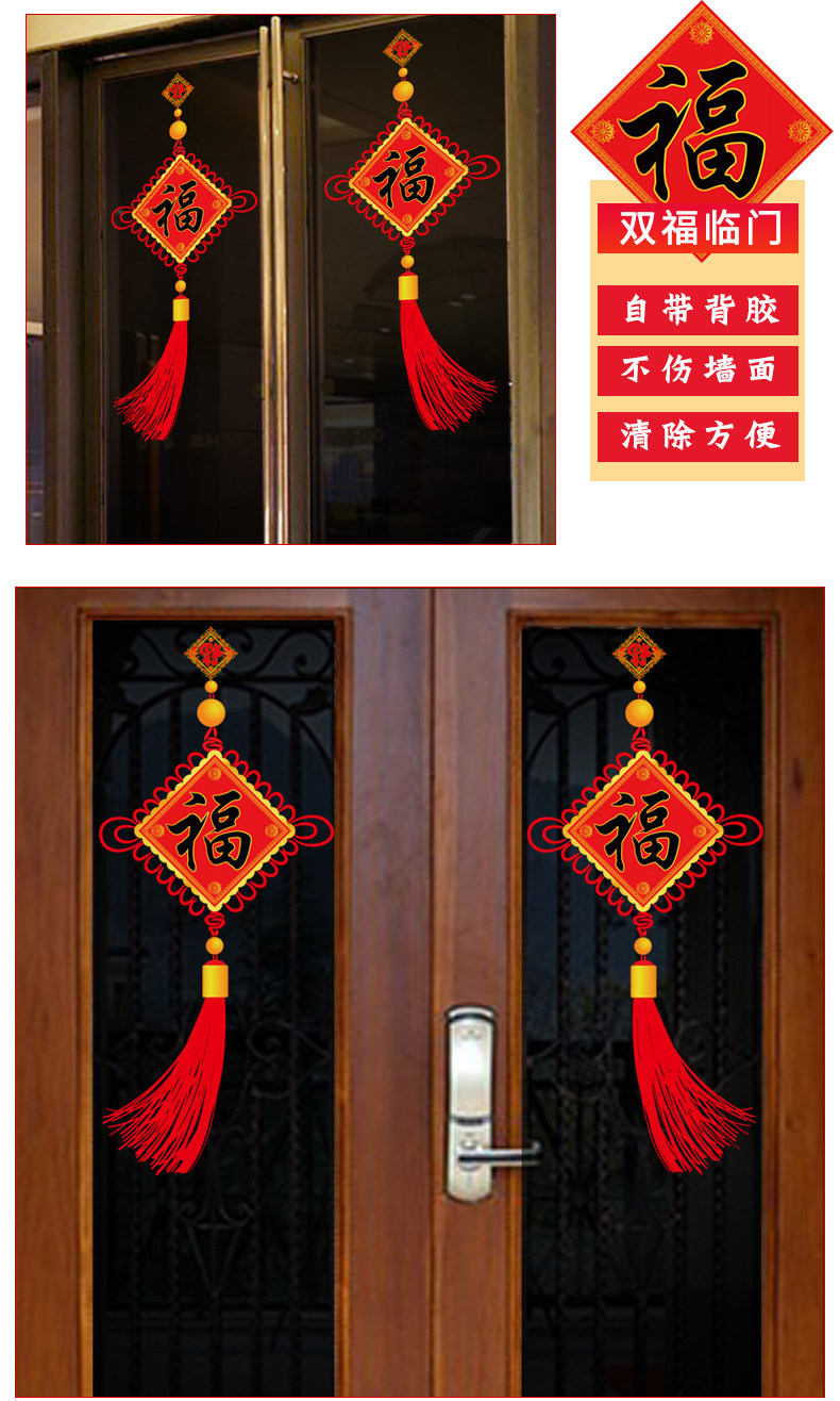 新年窗贴 双福临门福字喜庆墙贴店铺橱窗玻璃门贴画装饰品