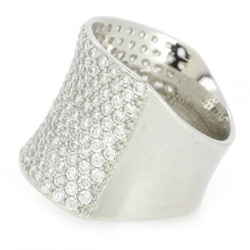-. Feature : CZ pave accent stone / Rhodium plated over sterling silver / Comes with ring size gift box