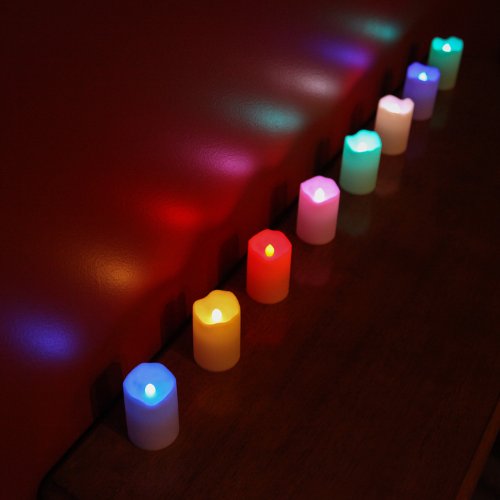 Versatile and colorful set of 12 resin battery operated candles for use indoors and outdoors. The variety of sizes makes it easy to set the mood and will illuminate your outdoor entertaining. For the more romantic feel, switch to the Amber Flicker mode to get the realistic ambiance of a candle or if you're throwing a party and want the vibe to be fun, switch to the Color Changing option. Inside or outside these lightweight candles are easy to take with you on the go for a picnic or a friend's BBQ. Don't worry about them melting or chipping as they are made of high quality resin that will handle normal banging and knocking around. 0