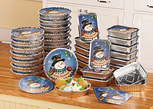 Set of 36 Goodies Container with Lids Snowman Christmas Leftover Food Aluminum Storage