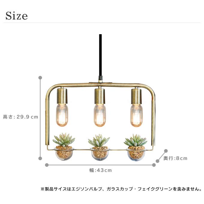 | サイズ | 約幅43×奥行8×高さ29.9cm ※エジソンバルブ、ガラスカップ・フェイクグリーンを含みません。 |
