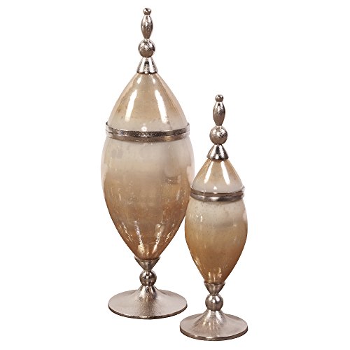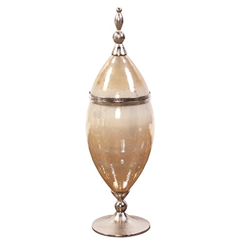 - This glass urn features an aluminum base and trim finished in a lovely rustic champagne on a caramelized antique glass body with lid