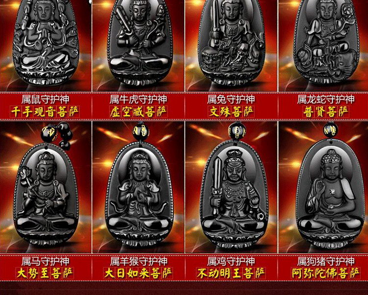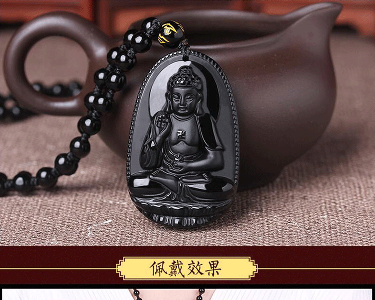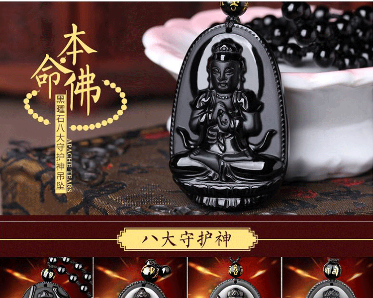 开光黑曜石吊坠辟邪转运十二生肖八大守护神本命佛吊坠佛像