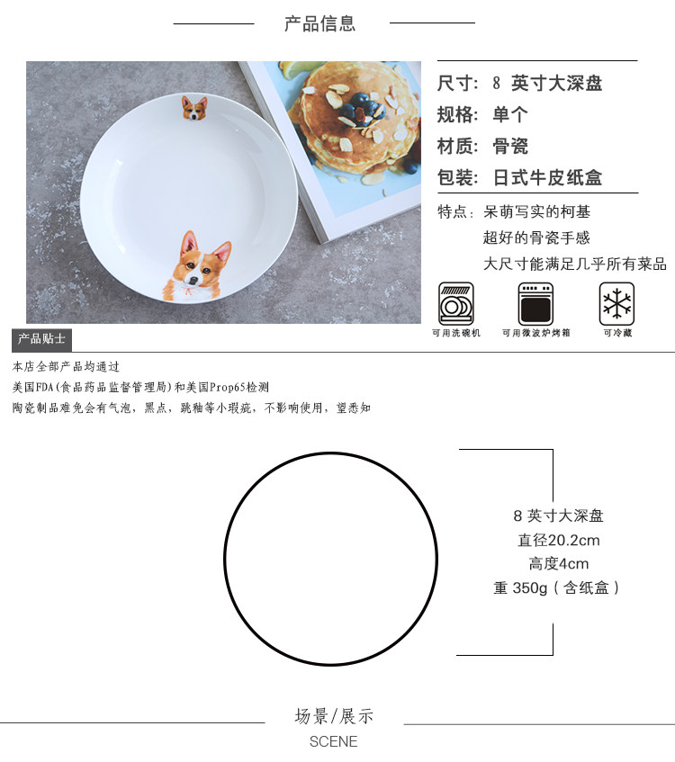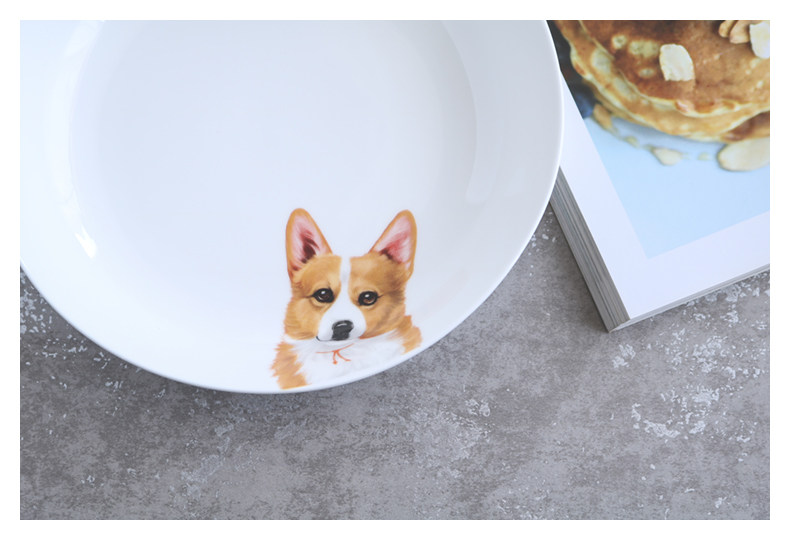 原创短腿柯基系列陶瓷餐具可爱动物盘子家用菜盘饭盘饺子盘深盘萌