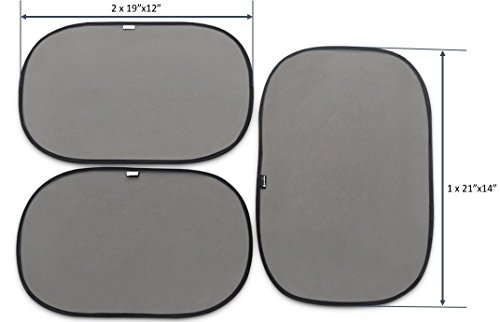 Static Car Window Sun Shade Set by My Papoose (3 Pack) – Blocks Glare, Heat and 97% Of UV Rays – Cling Shades Provide Protection for Baby – FREE...