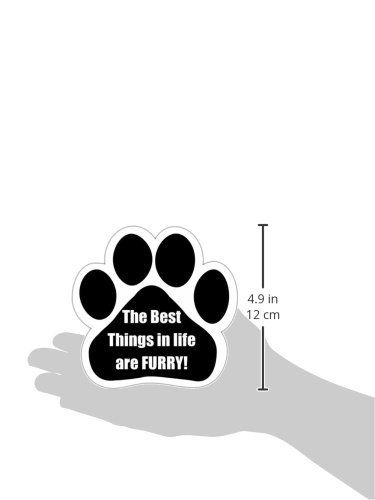 "The Best Things In Life Are Furry" Car Magnet With Unique Paw Shaped Design Measures 5.2 by 5.2 Inches Covered In UV Gloss For Weather Protection